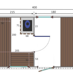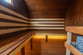 - Saunaausstattung, Sitzbank und Wasserablauf,