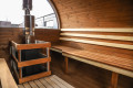 - Skamet-Holzofen mit Steinen, Kessel, Schutzzaun und Schornstein,