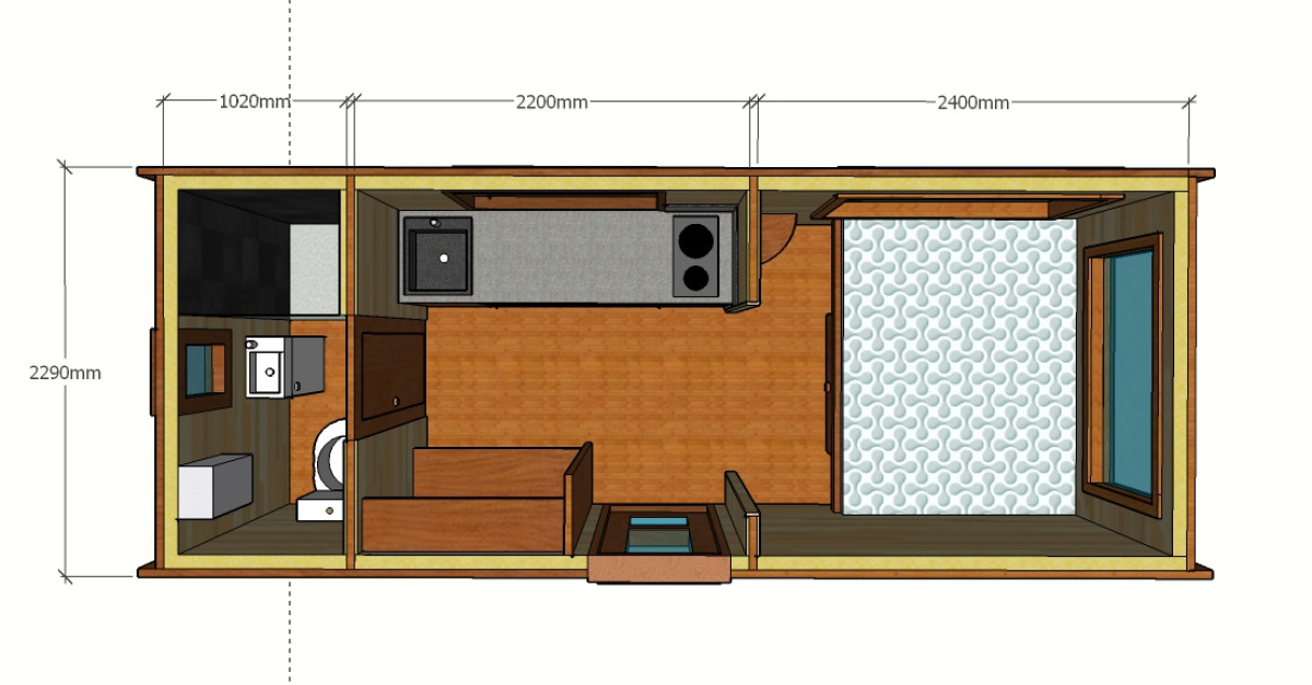 - Badezimmer: 1.02 x 2.20m