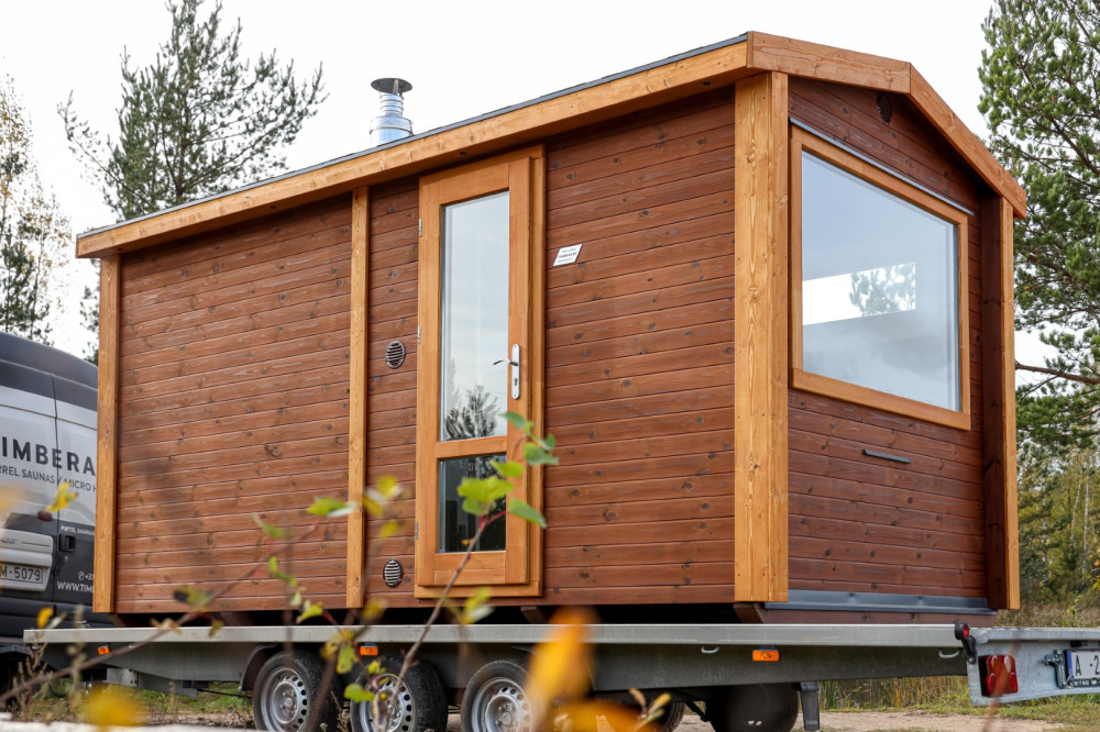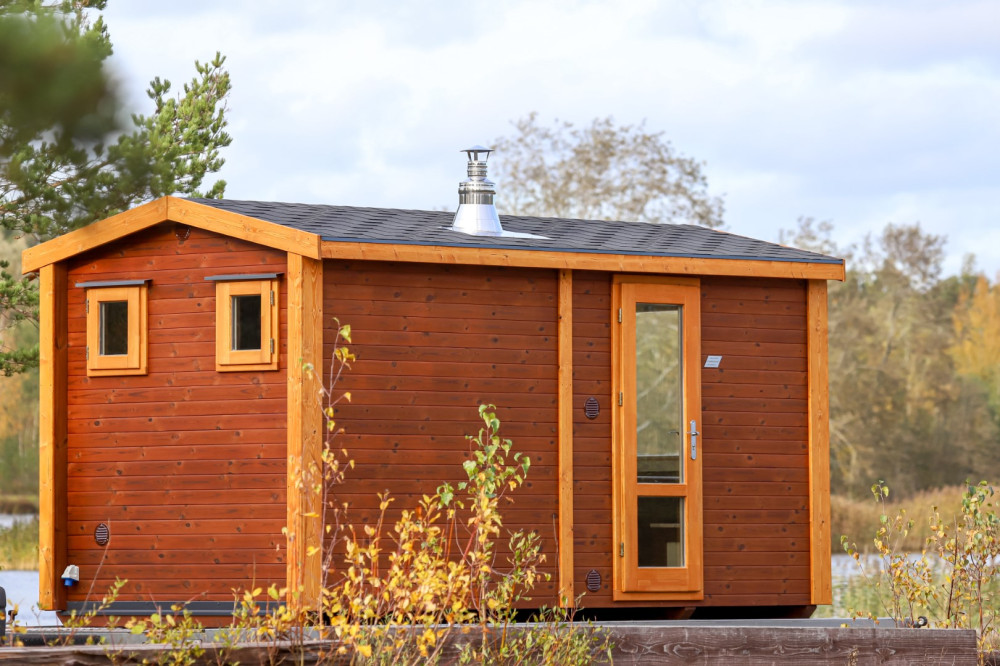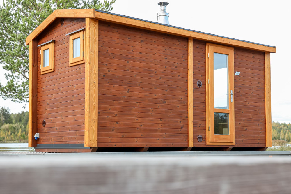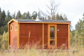 • Thermoholzrahmen mit Dacheindeckung und Fundamentstützen