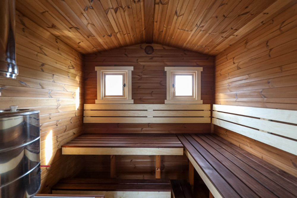 • Saunageräte, Bänke, Fackeln und Abläufe,